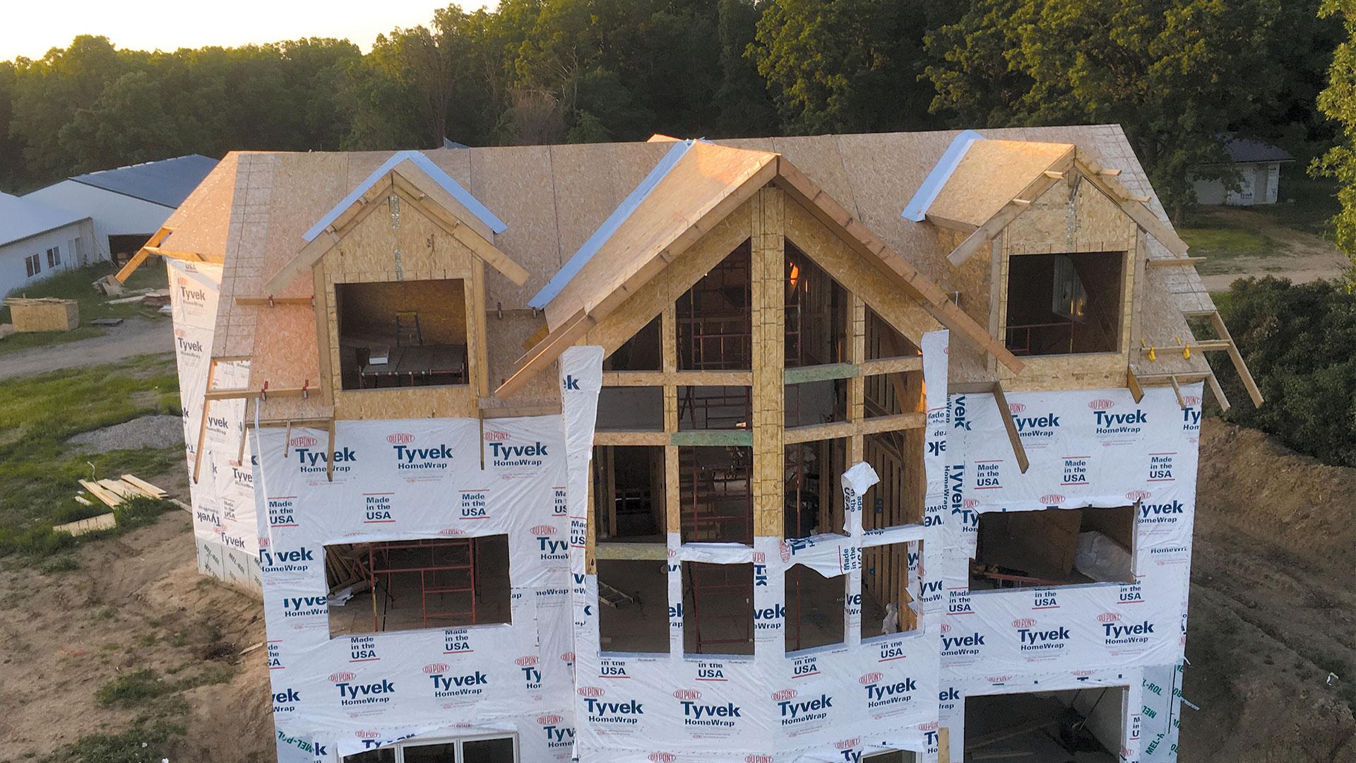 Ridge beams with SIPs panels can eliminate trusses and open your vaulted great room with extremely high R-values and air-tight panel systems.